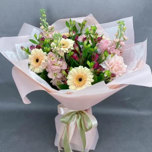 Валерия / г. Покров с. (Моск.обл) / 08.05.2025Оценка букета:Прекрасные хризантемы и герберы, быстро привезли. Большое спасибо!