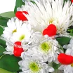 Уменьшенный: хризантема кустовая ромашковая (белая) - 3 шт., хризантема одноголовая (белая) - 1 шт., декор - 10 шт., рускус, фетр зеленый.