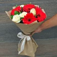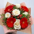 Невероятно-женственный букет создан стать подарком пленительнице вашего сердца. Утончённые белые розы и красные герберы воплотились в цветочную поэму, способную рассказать о ваших самых сокровенных  чувствах!