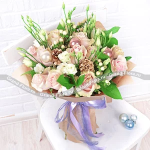 Очень понравился букет! Кустовые розочки выглядят нежно и романтично, а еловый декор добавляет изысканности. Доставка была быстрой, всё прекрасно упаковано, еще добавили защитную пленку. Спасибо, за внимание к деталям и заботу о букете!»