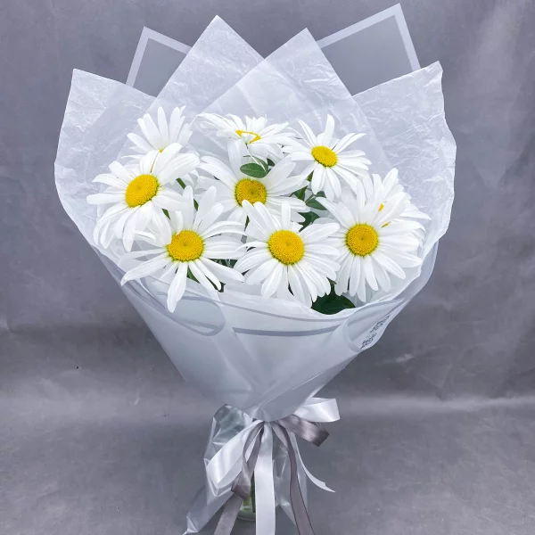 Простое счастье - букет из ромашек в стильной упаковке